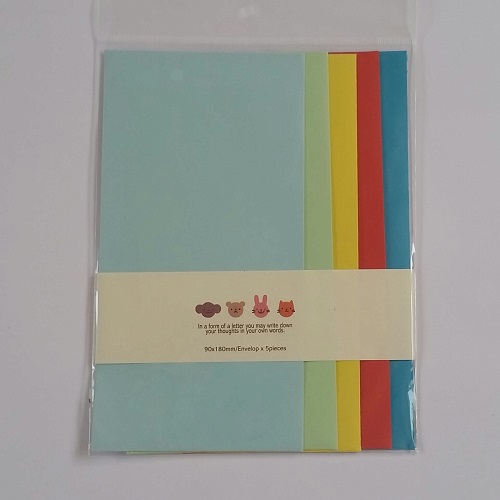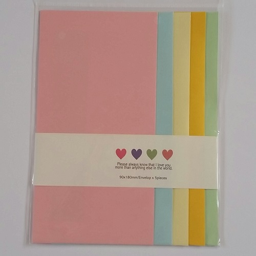Set de sobres de 5 colores, lisos, sin pegamento. Tamaño: 18*9 cms. Envio de colores al azar.